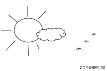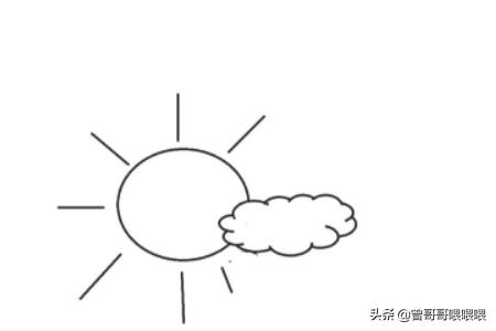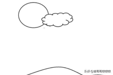 4、然后在上面继续画出一个圆圆的太阳,再画出一朵漂亮的云朵。