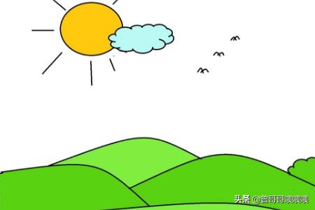 2、然后在弧线上面再画出三条弧线,是连绵的山峦哦。