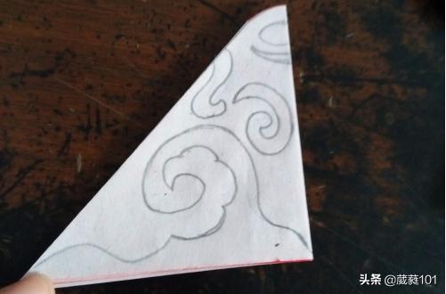 5.我们把纸翻过来,在纸的上面画上云纹的图样。