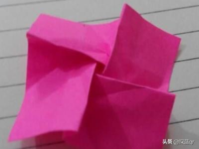 我们根据折痕把对角线向内折,中线向外折,然后会出现个正方形。接下来我们把一面的两个角向里对折,