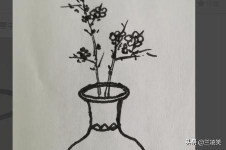 8、再画上插花,插花的形态要自然,精致,不可太多。至于插什么花可以根据自己的喜好,但是要注意枝干的穿插关系,以及花朵的疏密、多少对比。这样才完整有趣。
