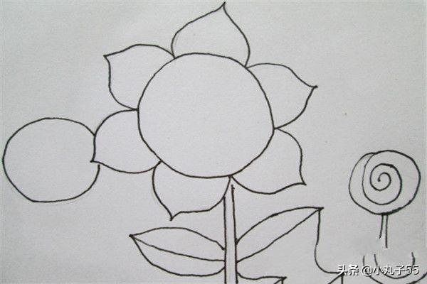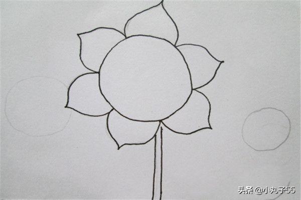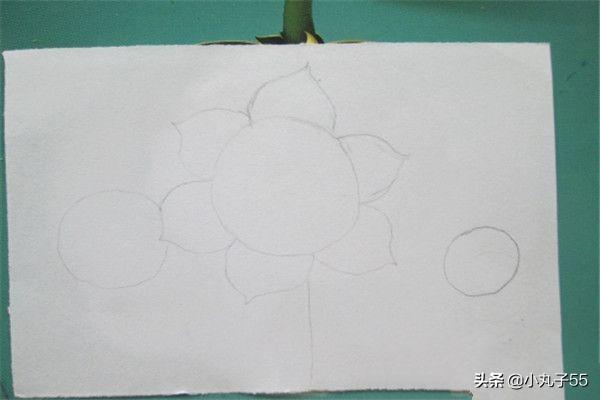1.首先用铅笔打底,注意画在正中间,然后勾出主体向日葵。