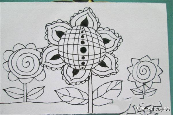 向日葵是一种非常大、又非常美丽的花,它的花盘里长满了密密麻麻的葵花籽,看起来想许多挤在一起的小格子,又像按照大小顺序排列的一个个圆圈,漂亮非常哦。那么怎样线描向日葵才能更漂亮呢,作画步骤如下,与大家分享。