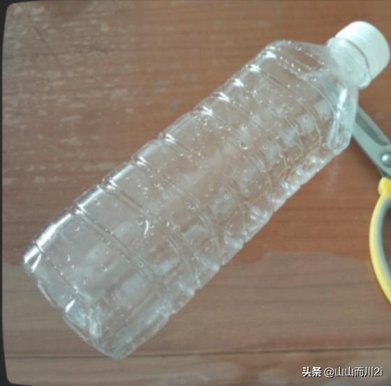 1、步骤一:准备瓶子。瓶子的准备很简单,只要一个矿泉水的瓶子就可以了,用剪刀将矿泉水瓶剪成两半,大小尽量一致就可以了。