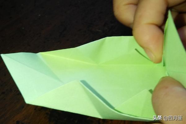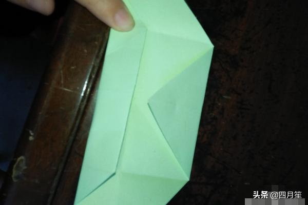 7.全部折完后打开,捏住其中一边向里折,如下图。