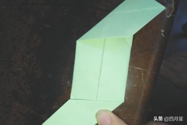 6.我们把左边的角向内折,再把右边的角向左折。另一边同样照做。共是折四下。如下图。